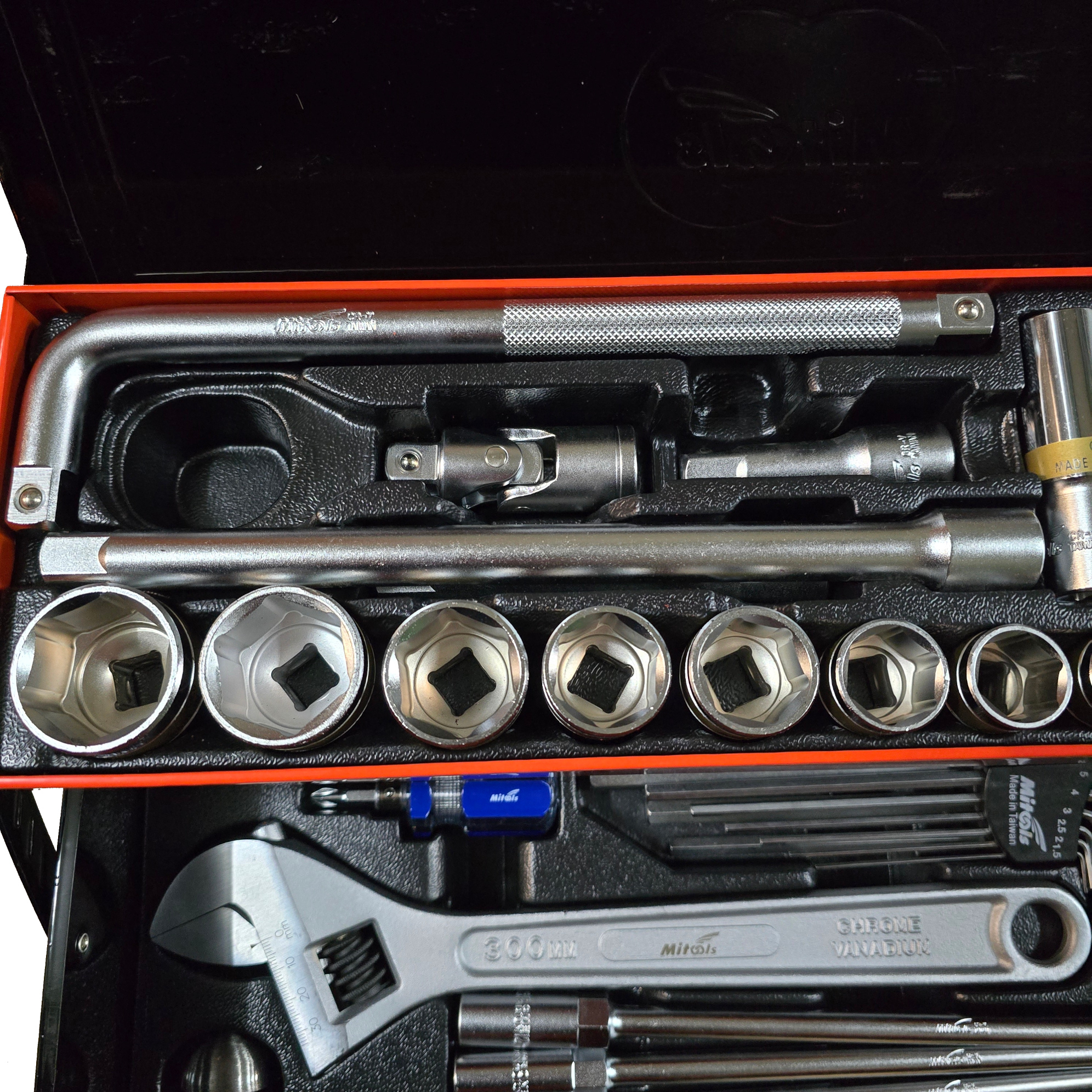 Der 56-teilige Werkzeugkasten von Sparex / Mitools umfasst Steckschlüsseleinsätze, lange Stecknüsse,